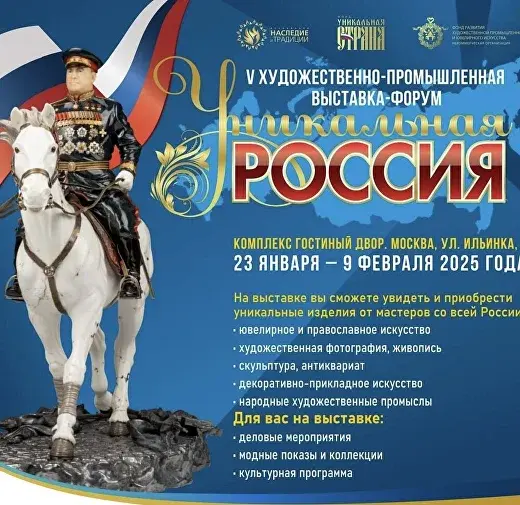 The V Art and Industrial Exhibition and Forum "Unique Russia". The grand event will unite hundreds of talented artists, craftsmen, designers, heads of enterprises, government bodies, art historians.